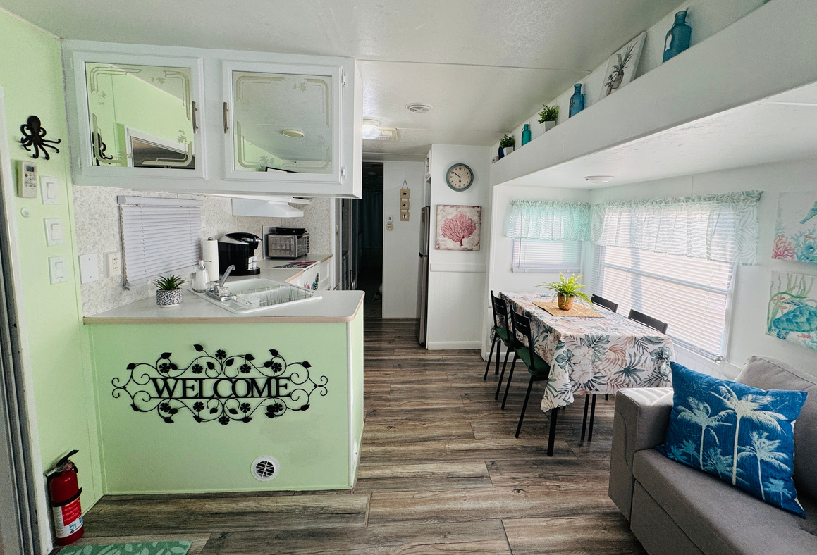 The Barefoot Bungalow home is located inside Key Largo Kampground. KLK offers tons of amenities for you and your friends and family! Some of what they have to offer: two beaches where you can access the beautiful mangrove trails on the water, boat ramps, swimming pool, playground, basketball court, shuffle boards, volleyball court, and much more!
